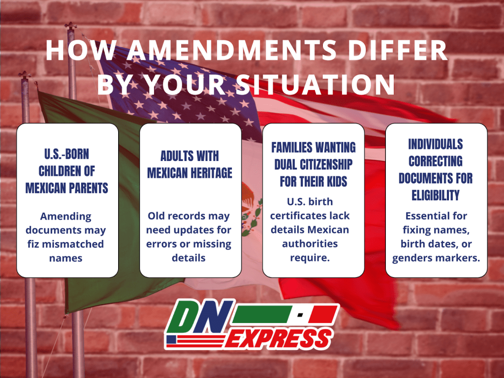 But here’s where it gets tricky: amending records isn’t the same for everyone. Whether you’re correcting a parent’s name, fixing a birth date, or aligning U.S. and Mexican documents, the process, and stakes, change depending on your situation.