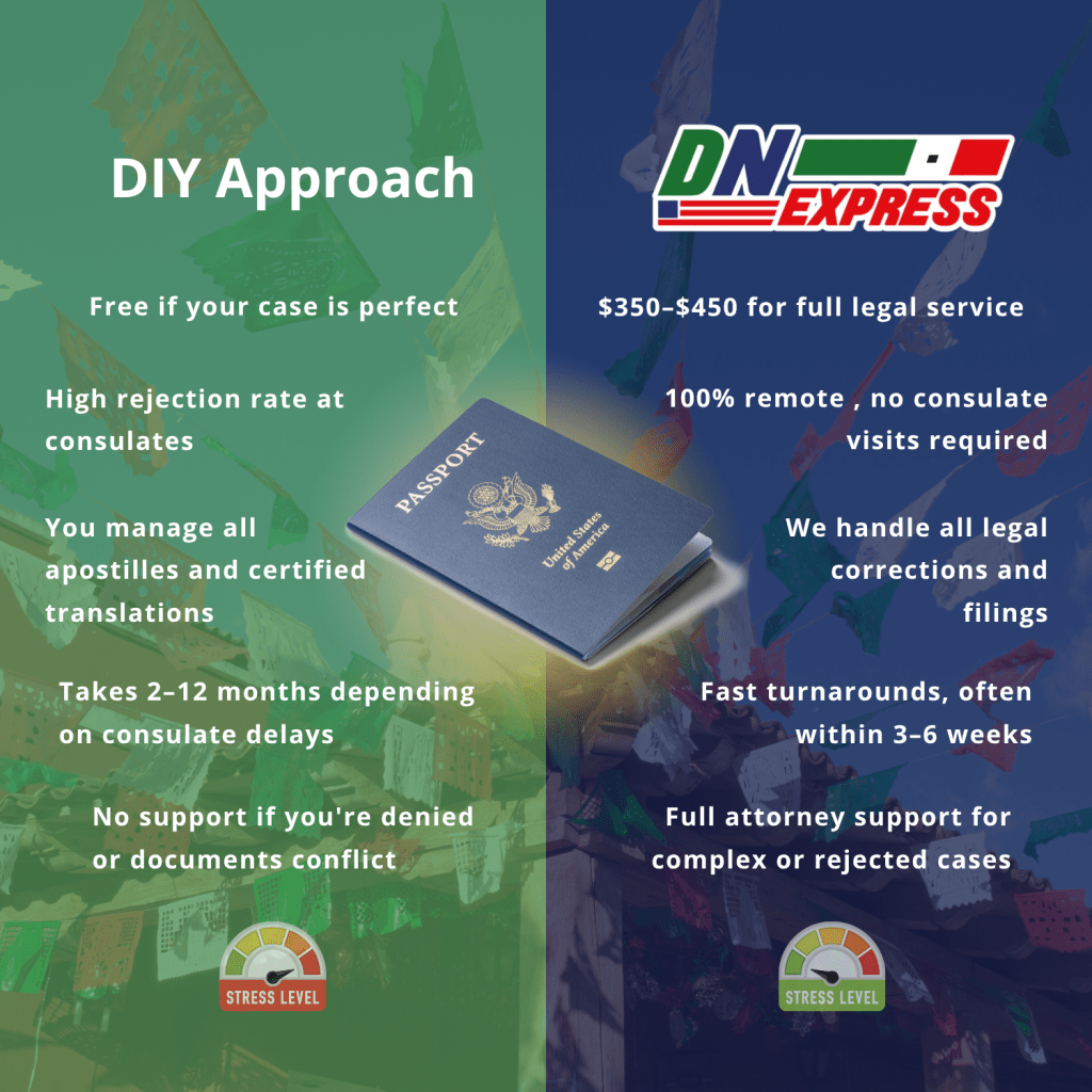 Consulates often demand that Mexican-born parents attend appointments with their U.S.-born children, creating an impossible hurdle if your parent is elderly, unavailable, or has passed away. - Lost time if records are missing or names don’t match