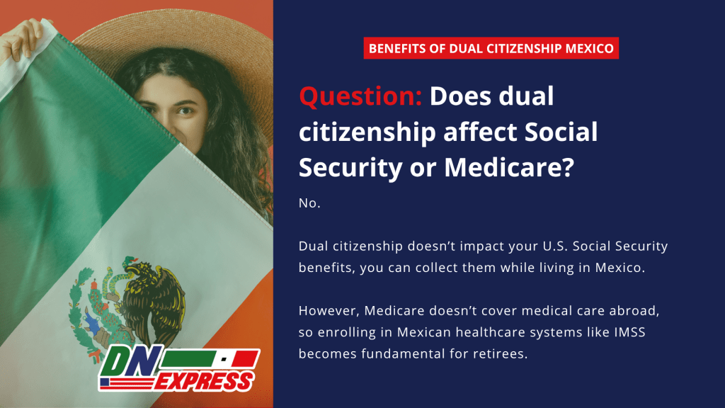No. Dual citizenship doesn’t impact your U.S. Social Security benefits, you can collect them while living in Mexico.Â