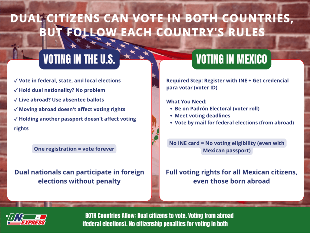 Here's the truth: dual citizenship does not automatically prove voter eligibility. In both the U.S. and Mexico, you must meet the specific documentation and deadline requirements of each country's electoral body.