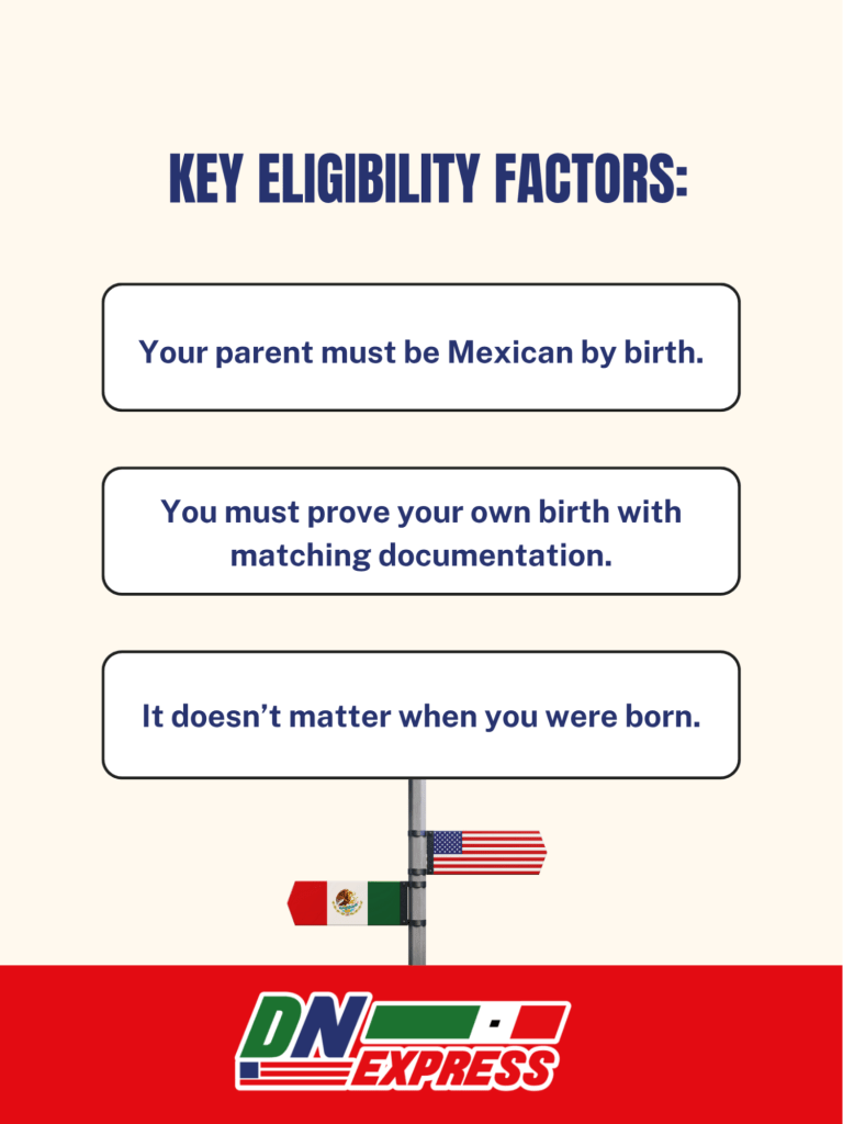 To qualify, your parent must first be registered as a Mexican citizen.Â