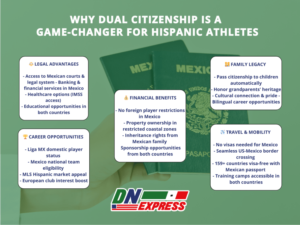Dual nationality also qualifies athletes as “domestic” in Mexico, giving them priority in club selection and team placement.