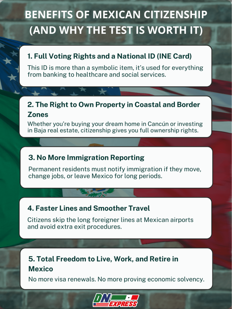 Passing the Mexican citizenship test is completely achievable, and the reward is huge, a second passport, the ability to vote, full ownership rights, and peace of mind for life in Mexico.